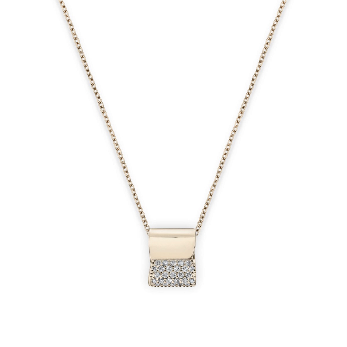 The emblem sits in gentle relief at center, its rounded lines forming a small orbit born of infinity. Light gathers with restraint, bringing balance and intent to the neckline. Pair it with a crisp shirt or a slip dress for presentations, evening plans, and slow Sundays that deserve easy polish.