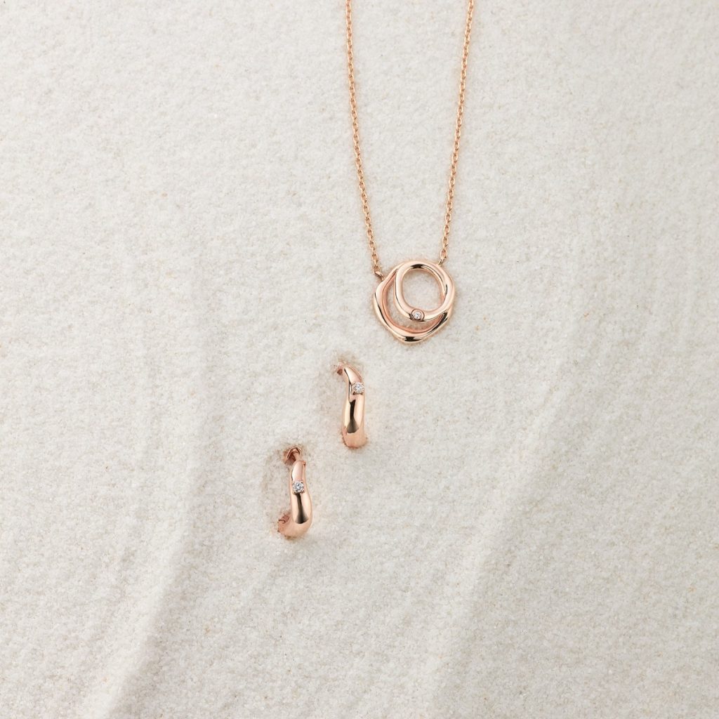 These earrings echo the graceful curves of waves, sculpted to perfection for a look that blends elegance with fluidity. Each earring is adorned with a radiant diamond, adding a subtle sparkle that makes them versatile for both everyday wear and special occasions.