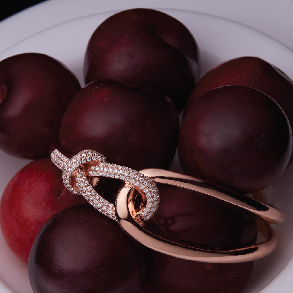 A commanding architecture of the Infini knot elevates the bangle into a beacon of calm power. It reads like a future heirloom, a sculpture of light shaped by legacy and resolve.