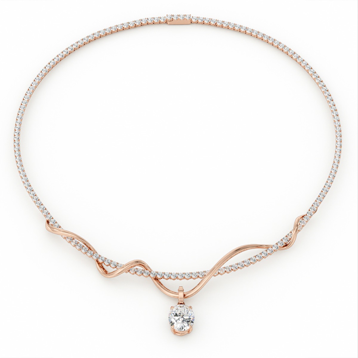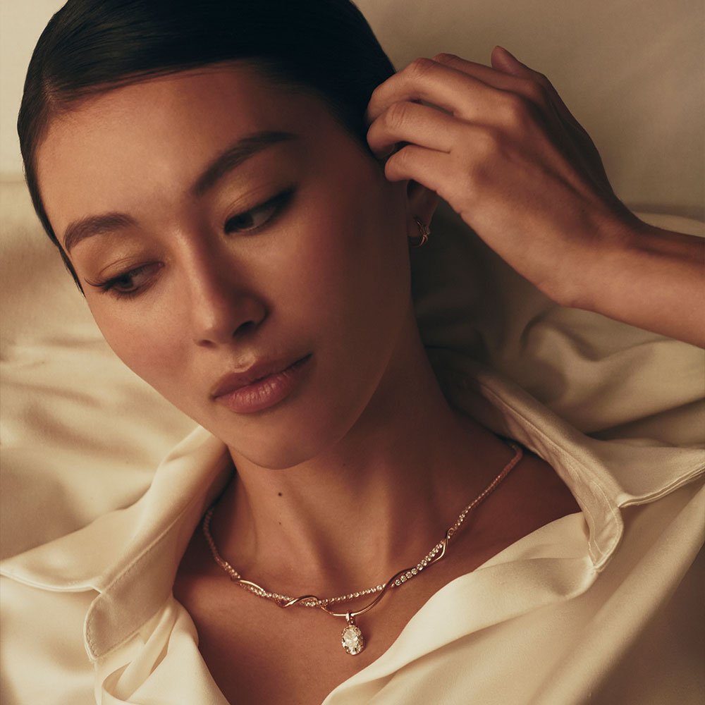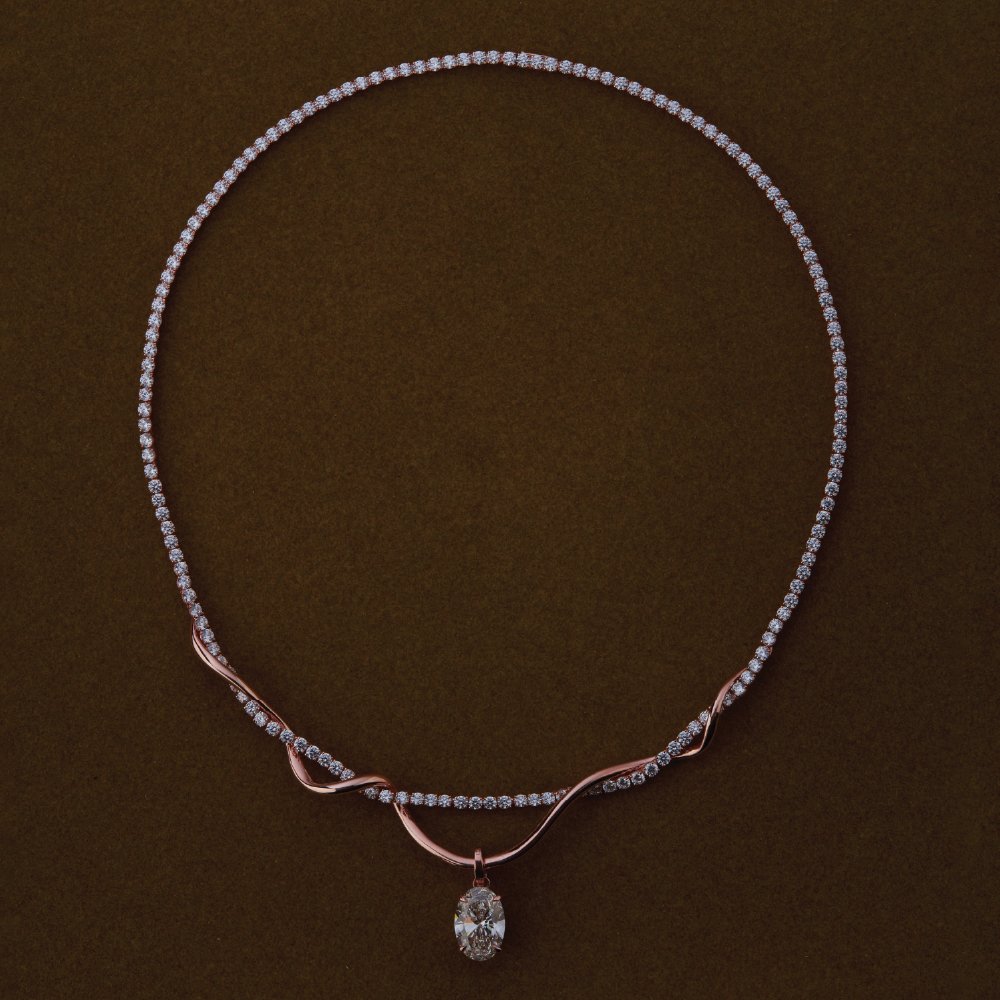 A solitaire diamond rests at the heart, encircled by Ananta’s sculptural weave knot. Light gathers without noise, becoming an aura rather than a spark. Serene speaks of who you have become clear, connected, quietly powerful. This necklace does not decorate. It reveals an inner radiance that endures.
