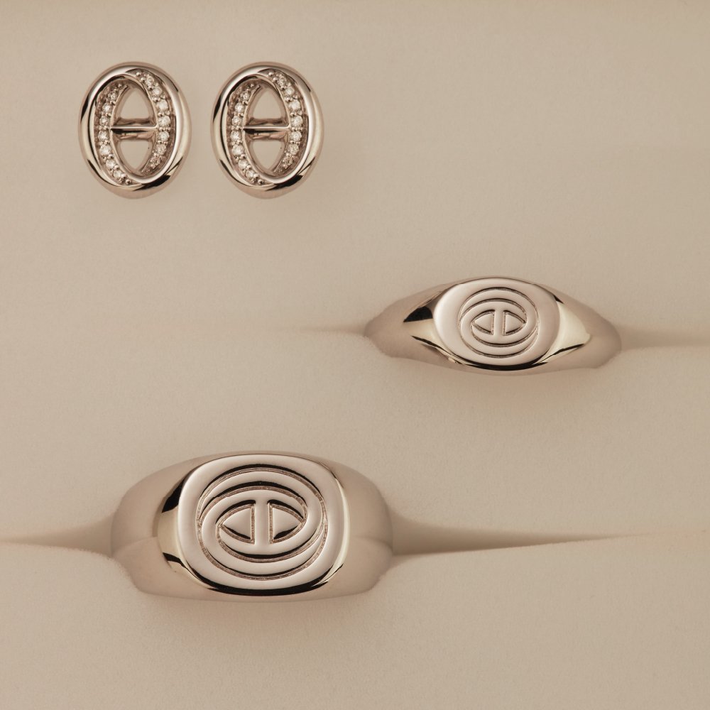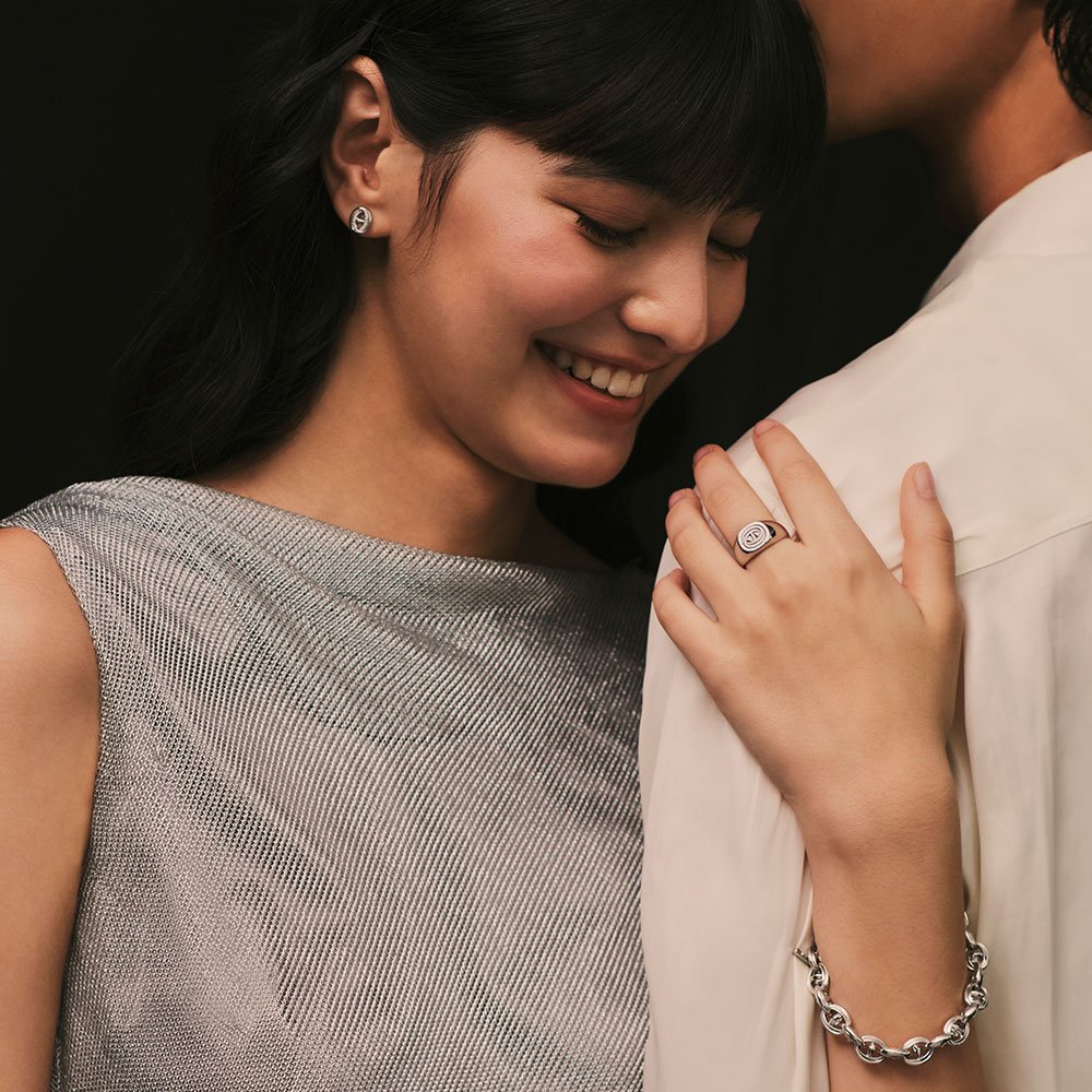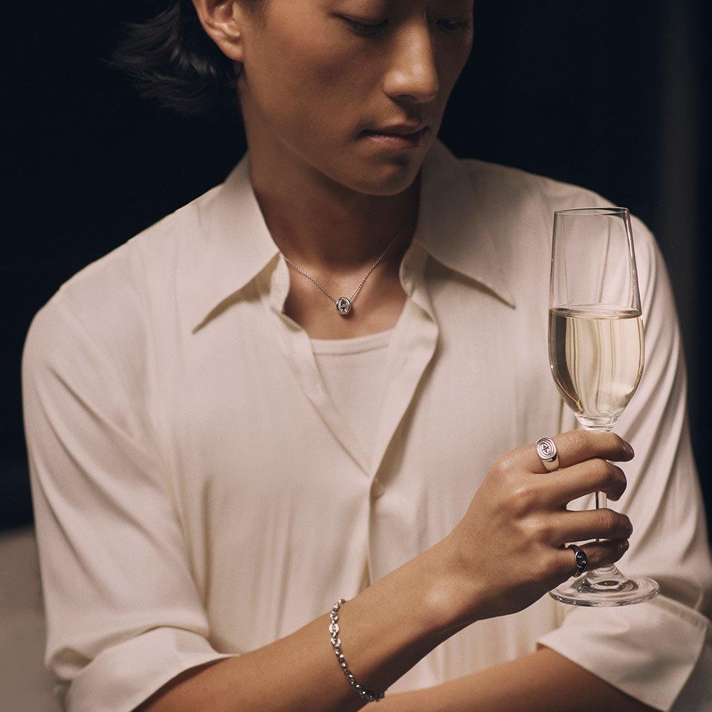 A contemporary crest handcarved from the Marque emblem. The unbroken line keeps your story at hand. Wear it as a personal mark through workdays, city walks, and evening plans, pairing with casual looks without losing refinement.