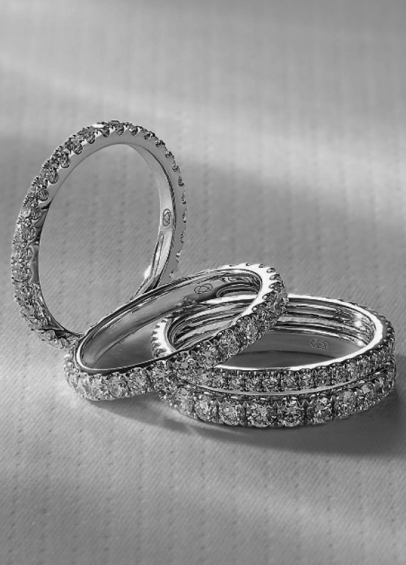 - Available in eternity, half eternity, or scattered stone designs